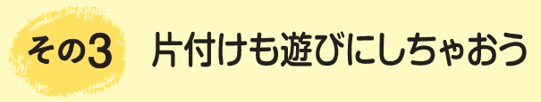 遊びの延長として、最後は一緒にお片付け。子どもと一緒に楽しみながら、ピカピカに!